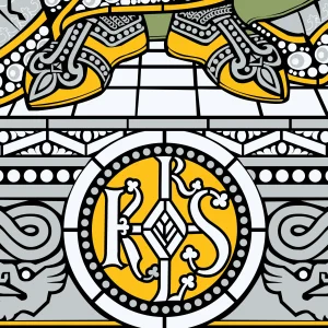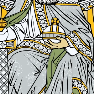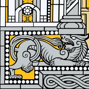 Ich wurde in Metz geboren und war schon immer von der Schönheit dieser Stadt, ihrer reichen Architektur und ihrer Geschichte begeistert. Als Grafikdesigner habe ich Monochrom gegründet, eine Agentur für Grafik- und Webdesign mit Sitz in Deutschland. Meine künstlerische Sensibilität führt mich auf natürliche Weise zu den künstlerischen Schönheiten von Metz. Das Kirchenfenster Karls des Großen beeindruckte mich durch seine große Modernität bei gleichzeitiger Beibehaltung eines offensichtlichen Klassizismus, der für mich reich an politischen und kulturellen Symbolen war. Es ließ mich in ein Handwerk aus einer anderen Epoche eintauchen, indem ich Motive aus der Vergangenheit wiederentdeckte, eine klassische und religiöse Darstellung aus einer anderen Welt. Die Vektorisierung dieses Kunstwerks bereitete mir trotz der Tatsache, dass es sich nur um eine Reproduktion handelte, viel Freude. Diese Arbeit erforderte dennoch eine Portion Kreativität, insbesondere bei der Nachbildung der fehlenden Elemente anstelle des Metallrahmens, der die Glasstücke verbindet. Die Symmetrie des Glasfensters vereinfachte den Arbeitsprozess. Die Wahl der Farben ist subjektiv, und um die Vektorisierung modern zu halten, habe ich mich für nur vier Farben entschieden. Das Ergebnis ist meiner Meinung nach sehr eindringlich und vereint Modernität und Klassizismus.